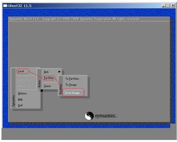 b.如上图选Local-Partition-From Image(注意,别选了Disk哦,那是全盘Ghost,你的非系统盘的文件也会被干掉),弹出界面如下图