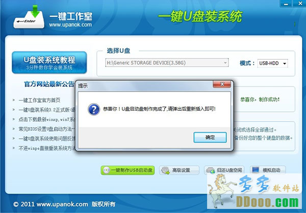 3、安装一键U盘装系统软件,开始制作启动盘,画面如下图,插入u盘,点击“一键制作usb启动盘”按钮后便开始为你制作启动盘。