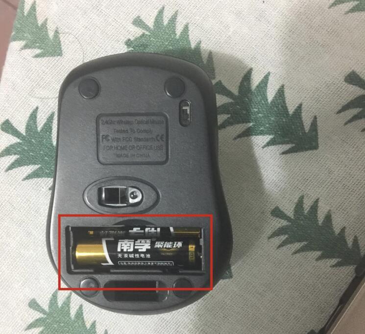 1、首先我们给新买的鼠标安装电池,一般都是一颗或者两颗5号电池,不差钱用南孚,亲测耐用~~~