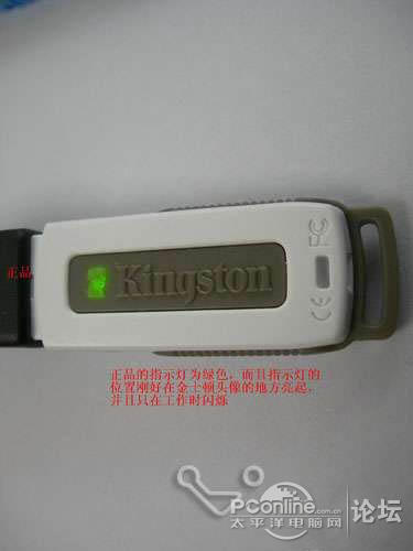 假货的状态指示灯位置不统一,颜色多为红色,而正品的指示灯为绿色,其位置刚好在金士顿头像处,并且只在进行读取操作时闪烁。
