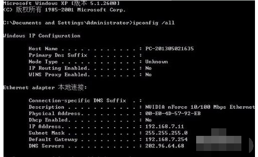 点开始->运行,输入cmd,在DOS提示符下输入以下命令: ipconfig /all ,按回车,就可以看到Physical Address,这个就是机器码,即Mac地址。