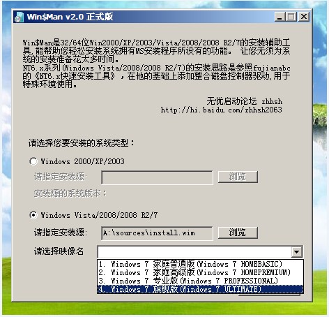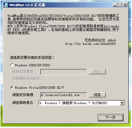7、我们双击WINDOWS安装器Winsman,选择第二项Windows Vista/2008/2008R2/7