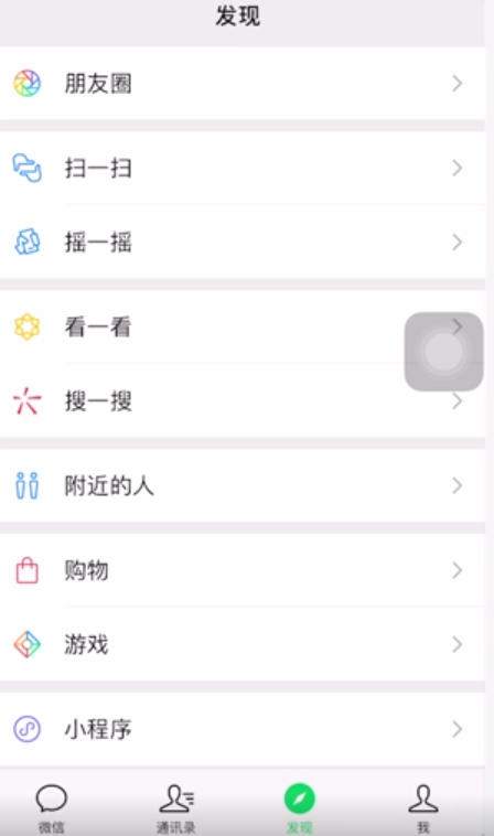 1、打开“微信”,点击下方的“发现”,在发现界面点击最上方的“朋友圈”进入。