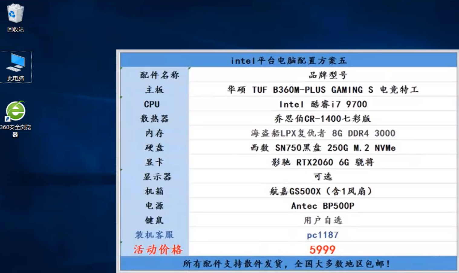 电脑diy配置清单2020