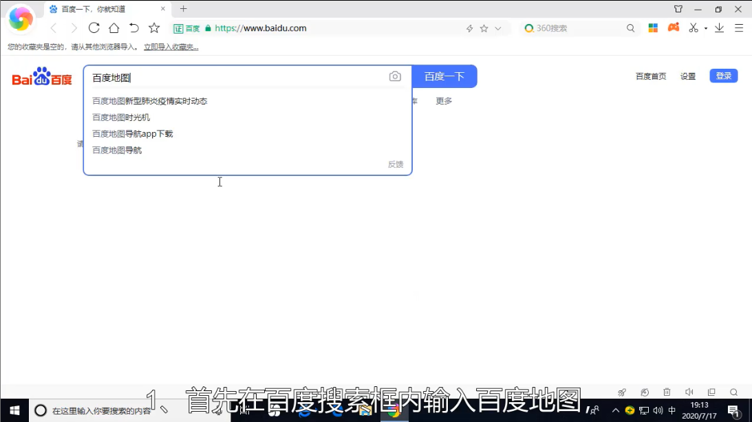 1、首先浏览器中打开百度,然后搜索打开百度地图。
