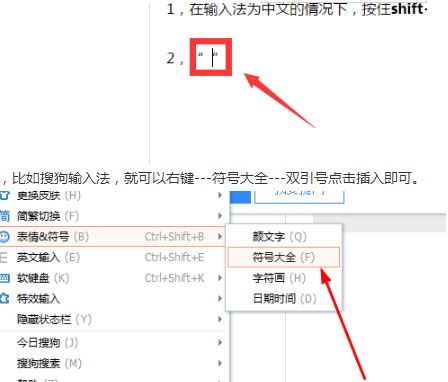 2.如图所示,您可以输入双引号。如果计算机下载了其他输入,则可以您也可以将其插入符号列表中。