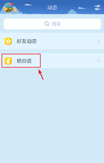 1、手机打开QQ,点击动态页面的“坦白说”。