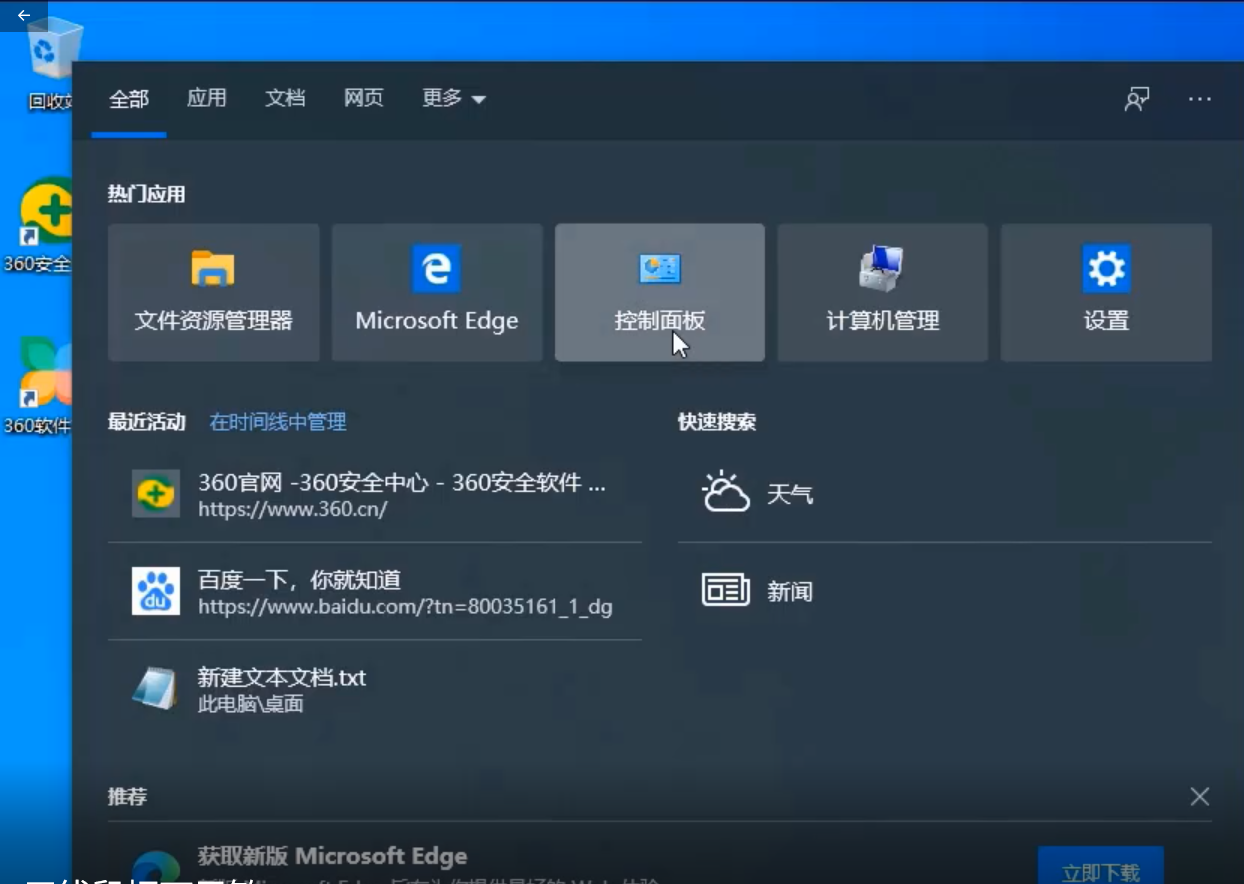 1.在桌面下方的搜索框里搜索控制面板,点击硬件和声音选项。
