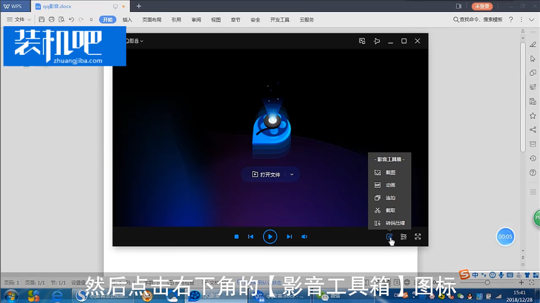 1、打开qq影音软件,然后打开右下角的影音工具箱图标,点击打开转码压缩。
