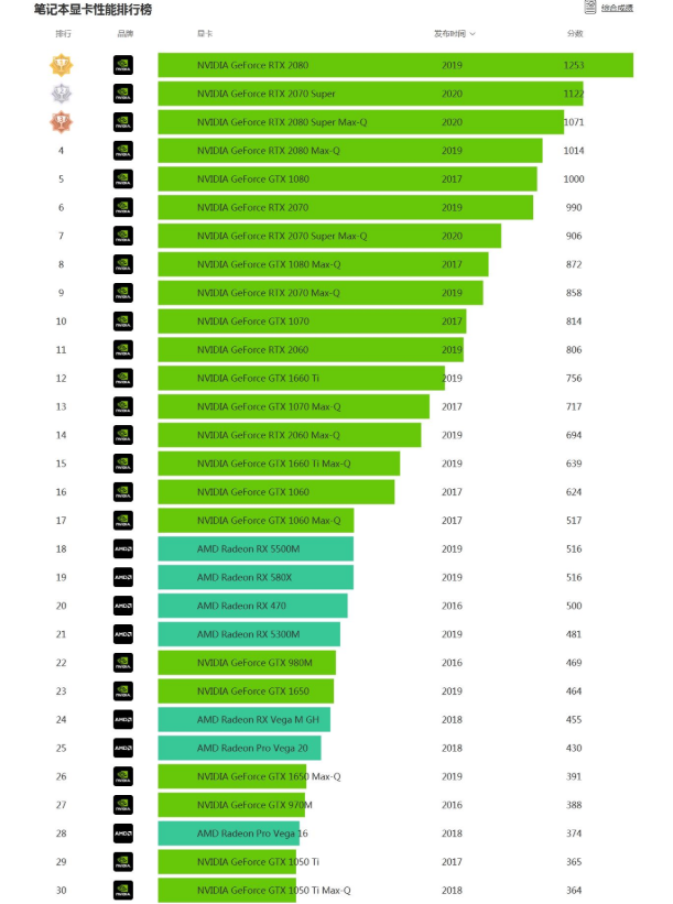 最近想要换电脑的朋友,一定会去参考电脑显卡,因为显卡对于电脑的整体使用体验是起到至关重要的性质,所以小编今填带来了笔记本显卡性能排行榜。(前30位)