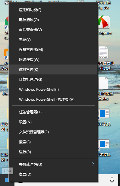1、首先右击左下方的开始菜单,选择磁盘管理选项即可。