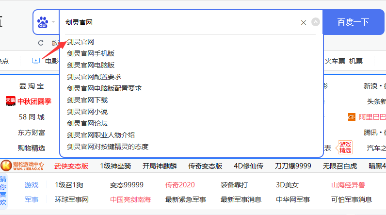 1、首先点击浏览器打开,之后搜索“剑灵官网”即可。