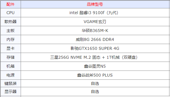 1.办公+游戏都可以的性价比的组装电脑配置单