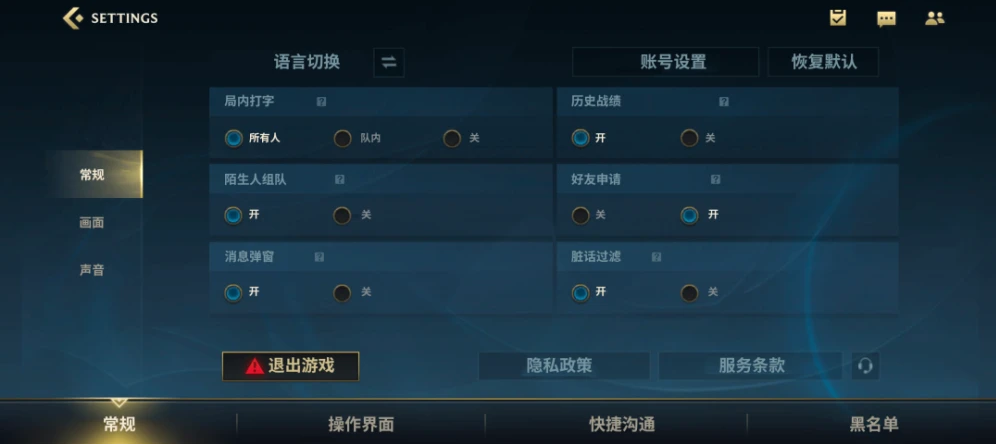 英雄联盟手游中文版设置翻译: