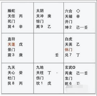 4、下图:整个奇门遁甲的运作都在两张重叠的八卦图里面,天盘有九星、八门、八神,地盘也有九星、八门、八神,极其复杂。