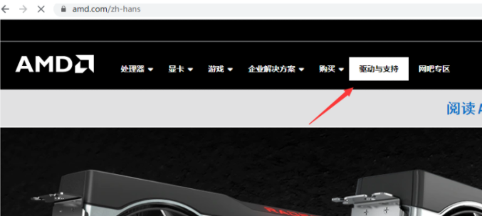 1、登录到AMD的官方网站amd.com,单击【驱动程序和支持】。