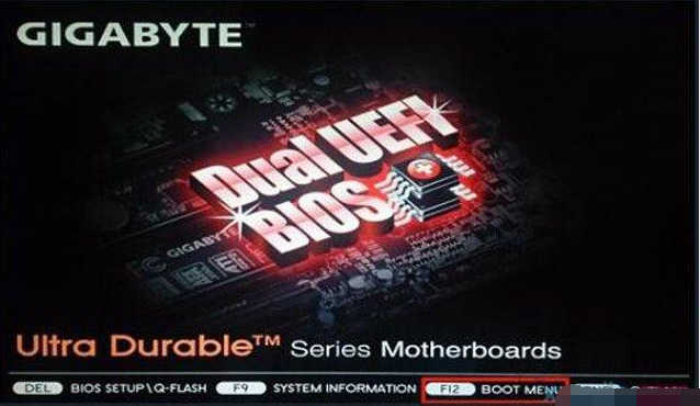首先,我们将电脑进行开机,在开机的一瞬间并跳出技嘉的标志界面,立即按“Delete”键或者“F12”键,即可进入技嘉主板BIOS界面中。