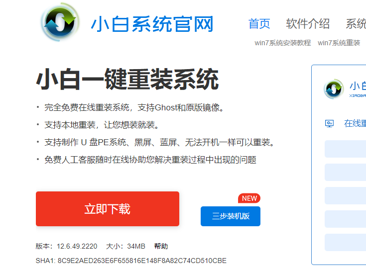 1、首先,到小白官网下载小白一键重装系统软件,并将u盘插入电脑。