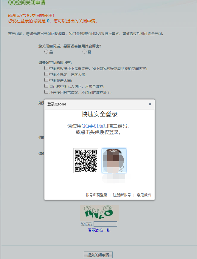 1、首先访问QQ空间关闭申请,会弹出登录框,登陆你的qq账号。