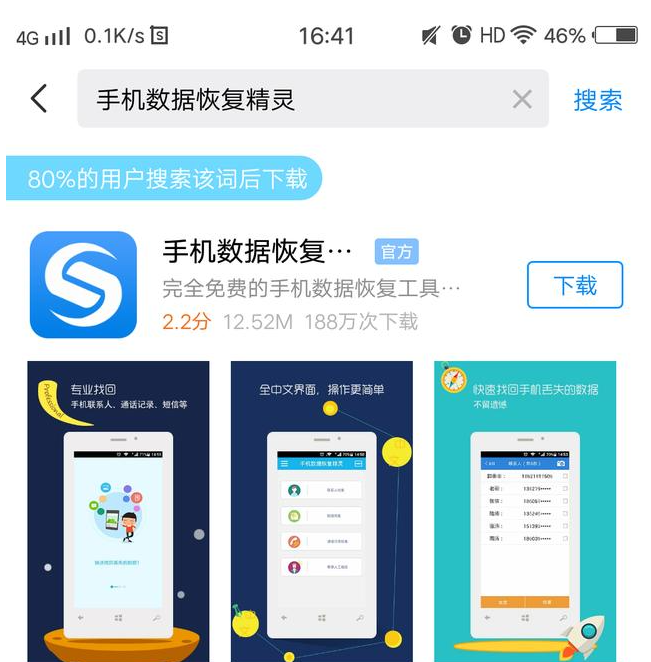 1、想要查看微信聊天记录,那么首先通过手机浏览器或者手机应用商店找到手机数据恢复精灵,然后把它装在对方的手机里。