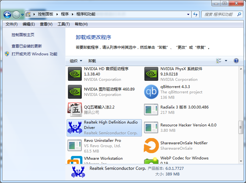 1、先在 Windows 控制面板中卸载掉当前已安装的realtek高清晰音频管理器。