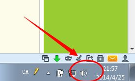 1、如果任务栏的喇叭图标显示一个叉或者静音符号,请开启调整音量。没有的话继续,点击小喇叭图标。