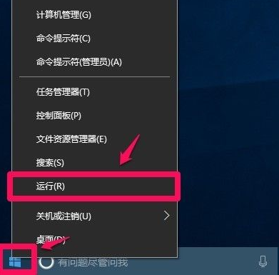 1、右键点击系统桌面左下角的【开始】,在开始菜单中点击【运行】。
