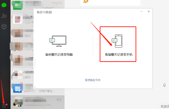 经常使用电脑版微信的小伙伴可以试试这个方法,首先把电脑和手机连接至同一网络,打开电脑微信,点击左下角菜单栏,选择备份与恢复-恢复聊天记录至手机。然后等待数据传输完成就可以了。