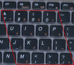 3、部分笔记本可能没有数字键盘,如联想的U160、U165、G480(Windows8机型)。在数字键盘区域没有橙色标注数字的,表示没有数字键盘区。