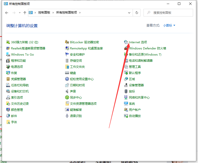 1、打开控制面板,左键双击:Internet选项。