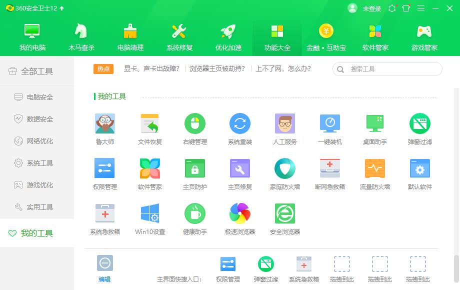 1、我们双击打开360安全卫士,点击功能大全。(没有360安全卫士的我们可以下载一个)