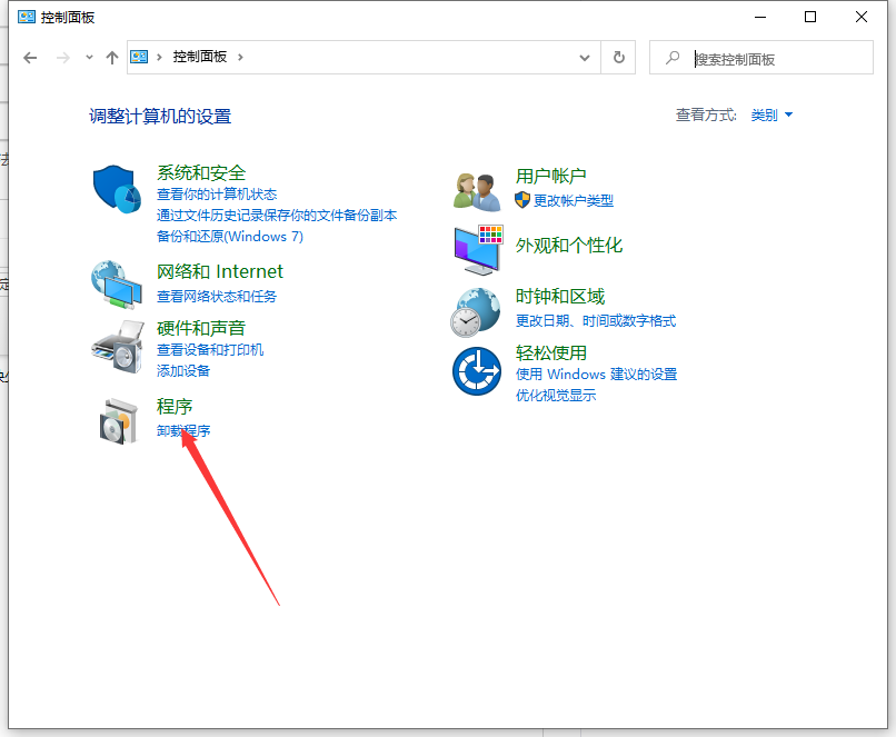 1、进入电脑,然后点击进入控制面板。进入之后,我们点击进入程序。
