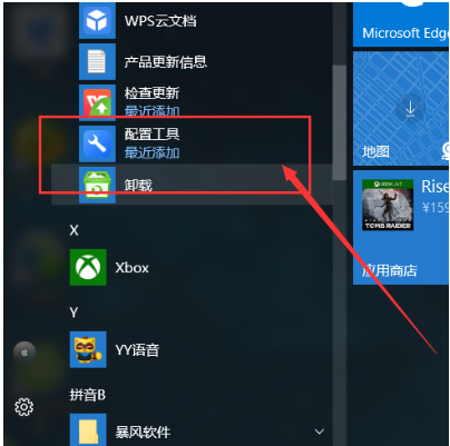 1、点击左下角开始菜单,在wps软件安装列表中,可以看到“wps配置工具”菜单,单击打开程序功能。