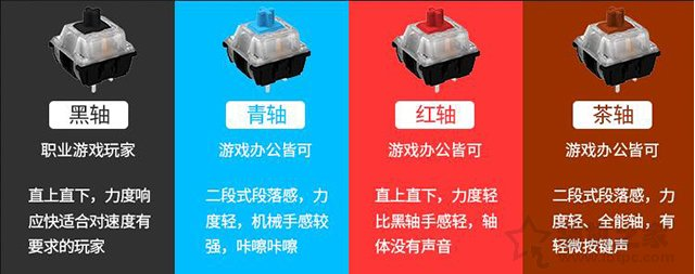 黑轴:按键按下去比较费力的红轴,适合手感喜欢直上直下的,力度响应快适合对速度有要求的玩家。