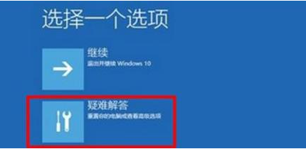 1、首先长按电脑主机的电源键,等待关机后再按下电源键开机,重复三次,出现选项窗口,进入安全选择,点击“疑难解答”。