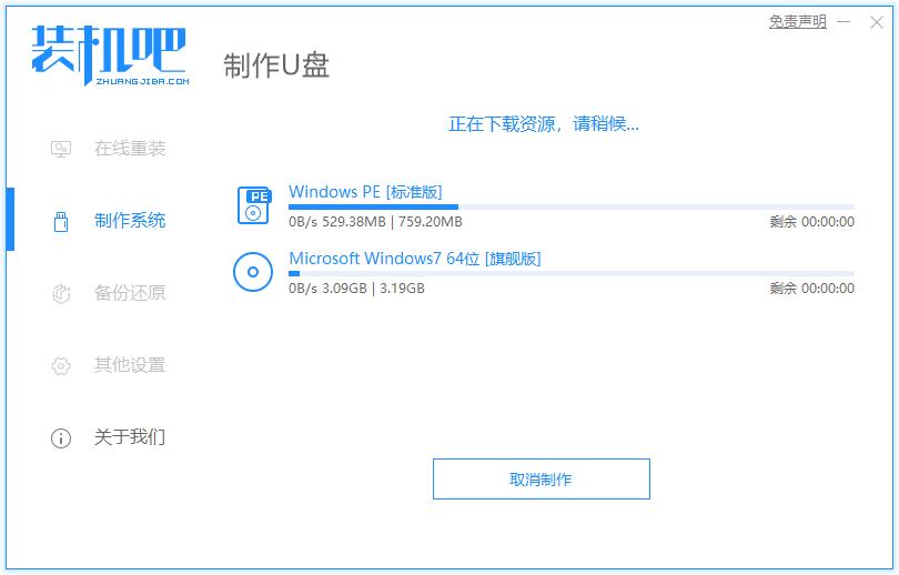 2、打开装机吧一键重装系统软件,选择“制作系统”后,点击开始制作。