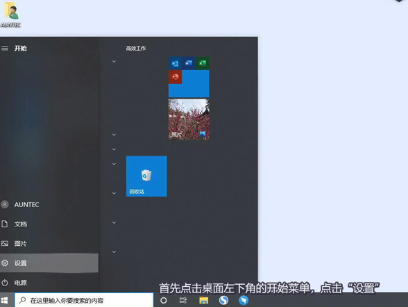 1.首先点击桌面左下角的开始菜单,点击“设置”。