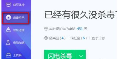 1.百度搜索下载并安装电脑管家,打开病毒查杀的功能。如图所示: