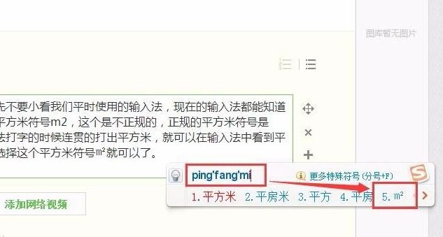 1、在用输入法打字的时候连贯的打出平方米,就可以在输入法中看到平方米符号了,按数字选择这个平方米符号㎡就可以了。