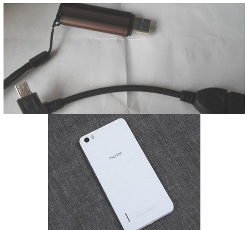 1、准备安卓智能手机一部(小编用的是华为荣耀6)、U盘一个、OTG数据线一条。