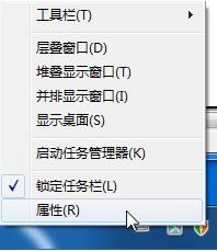 1.首先我们在任务栏中使用鼠标右键打开【属性】。