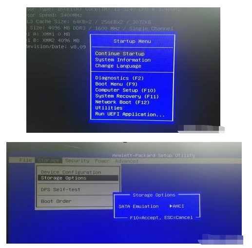 1.启动惠普电脑后,直接按键盘左上角的Esc键,直至出现以下界面。移动光标到ComputerSetup(F10)菜单上,回车。可进入选择界面,通过界面可了解,按住F10,可直接进入BIOS设定界面:
