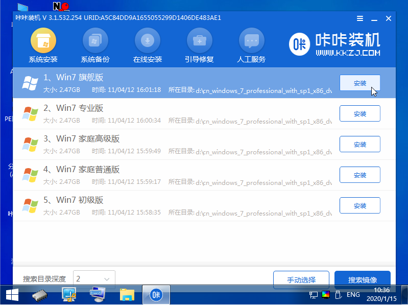 7、打开咔咔装机软件,选择win7安装系统。