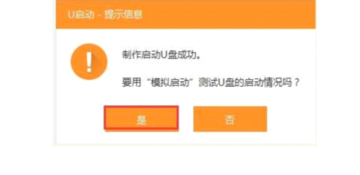 6、制作完成后系统会弹出“是否进入模拟启动”的提示框,点击“是”,进行模拟测试;如图所示: