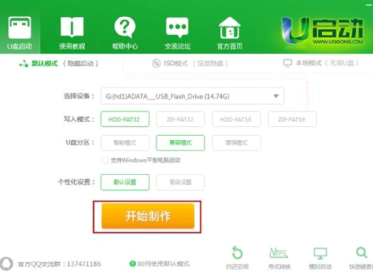 备注:关于写入模式和U盘分区,U启动为您推荐的为较佳模式,若无特别需求,您无需做任何改动。