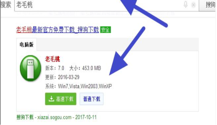 1、首先我们打开浏览器,搜索老毛桃,点击下载老毛桃。