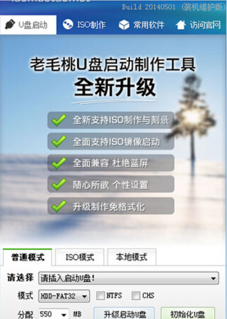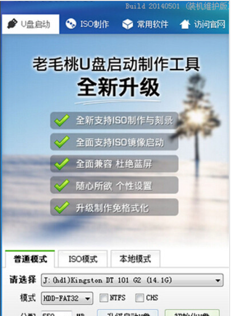 软件版本:老毛桃u盘20140501