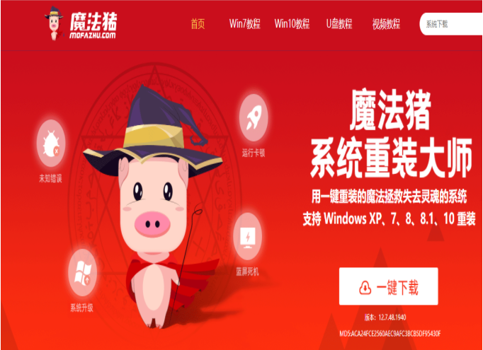 1.插入U盘,打开魔法猪官网下载魔法猪软件。