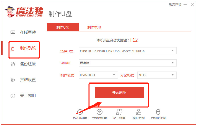 3.安装打开点击“制作系统”,选择“开始制作”。