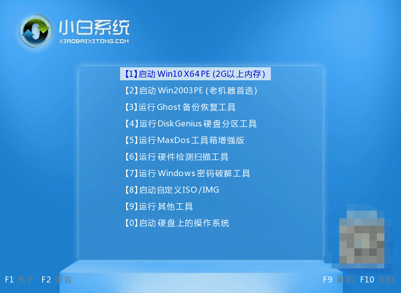 7、然后就到了PE选择界面,选择“01 ”点击回车进入PE桌面。